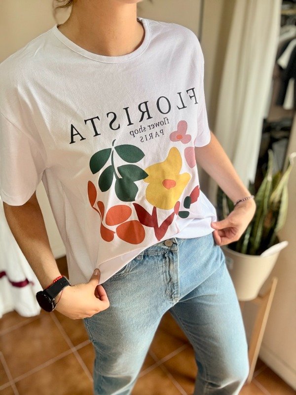 Remera de algodón estampada. Modelo ancho