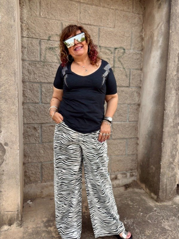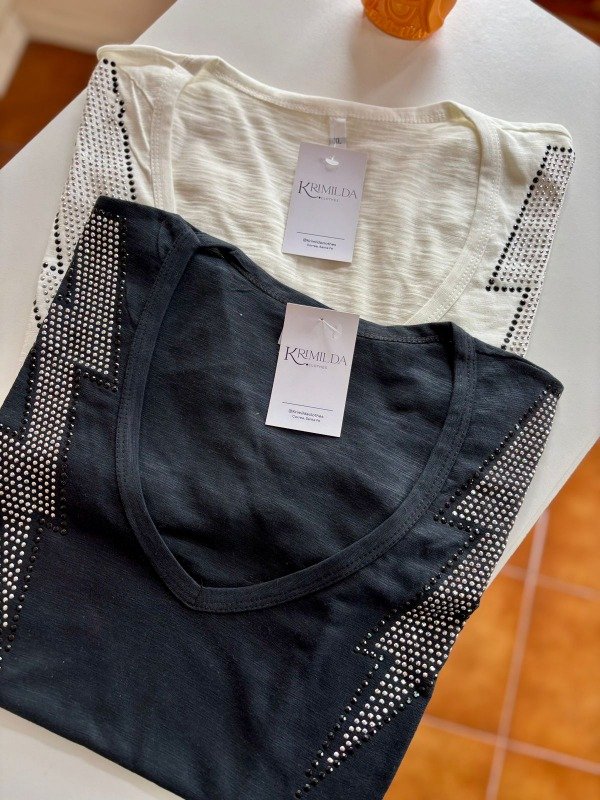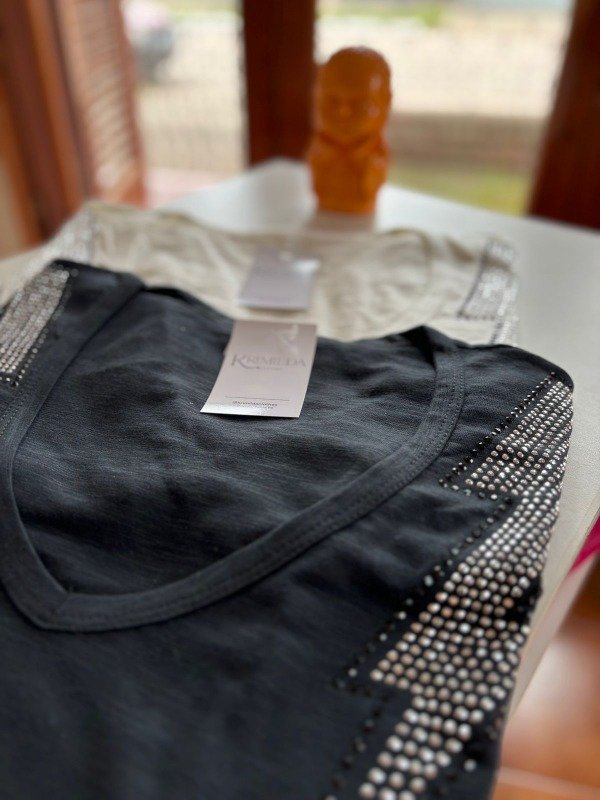 Remera de algodón escote en V con brillos
